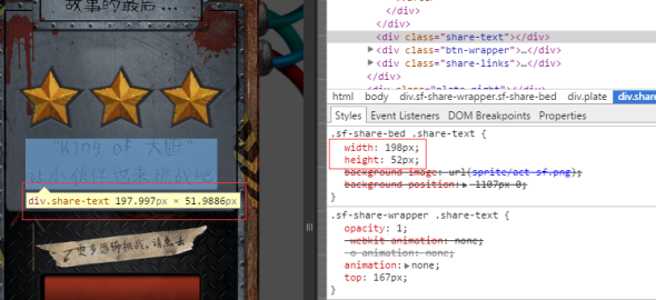 可以看出这个元素正确的尺寸应该是 198×52,经过 zoom: 1.10 放大后容器反而变小了,后来将 zoom 值调整到 1.104(414/375),图片的边界问题算是解决了。