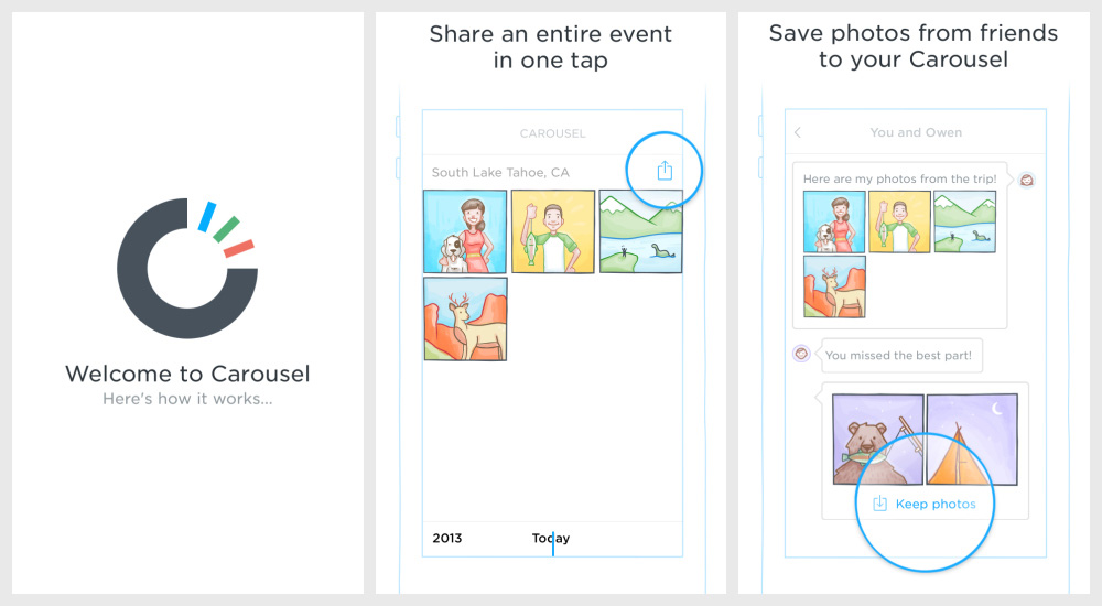 有些页面中的说明文字太长。例如,关于共享的那一页完全可以简化,显示分享的内容以及社交网络的图标。